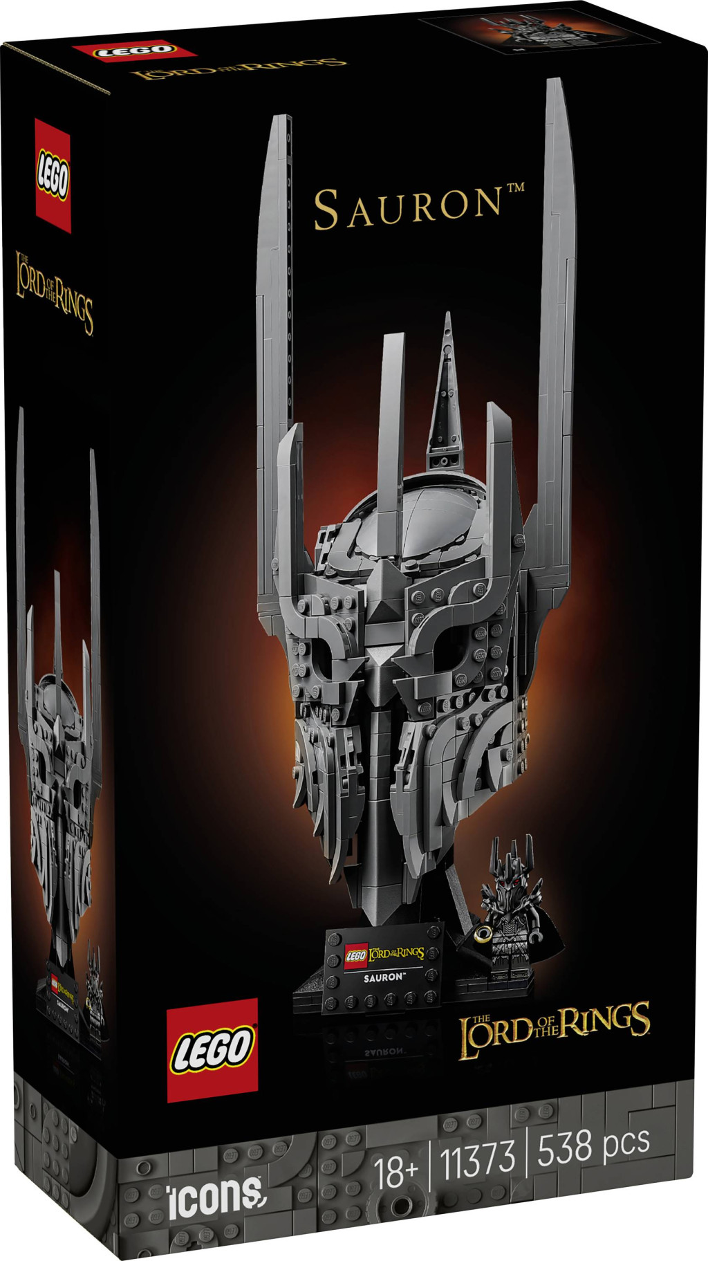 MÉRETEK: A LEGO® Icons A Gyűrűk Ura: Szauron sisakja egy 538 darabos építőkészlet, melynek modellje 33 cm magas, 13 cm széles és 13 cm mély.