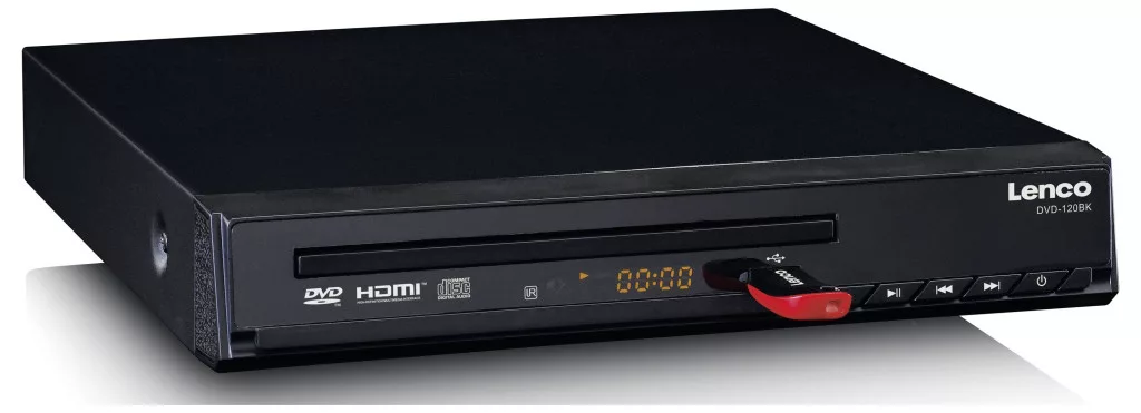 A Lenco DVD-120BK DVD-lejátszó USB-n keresztül is lejátszható. A készülék LED kijelzővel is rendelkezik. A mellékelt távirányítóval kényelmesen kezelheti a készüléket a kanapéról.