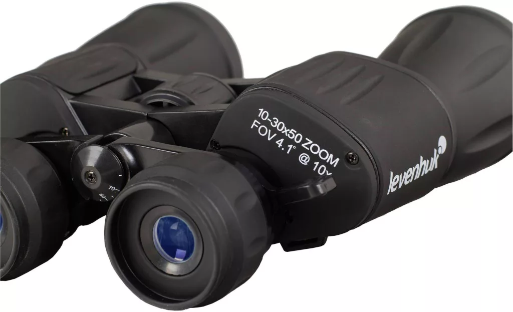 Levenhuk Atom 10-30x50 távcső Tulajdonságok: -Nagyítás: 10-30 x -Típus: Porro prizma -Optikai anyag: BK-7 üveg -Optikai bevonat: teljes felület -Objektív lencseátmérő (nyílás): 50 mm -Külső pupilla átmérő: 5 mm - Távolság a szemlencsétől: 14 mm - Relatív fényerő: 25-2,9 - Látómező: 4,1 fok - Látómező / 1000 m: 75 m - Közeli fókusz: 8,2 m - Dioptria beállítása a szemlencsén: ± 3 dioptriák - Pupilláris távolság (IPD): 56-72 mm - Szemcsészék gumiból - Méretek: 198 x 198 x 65 mm