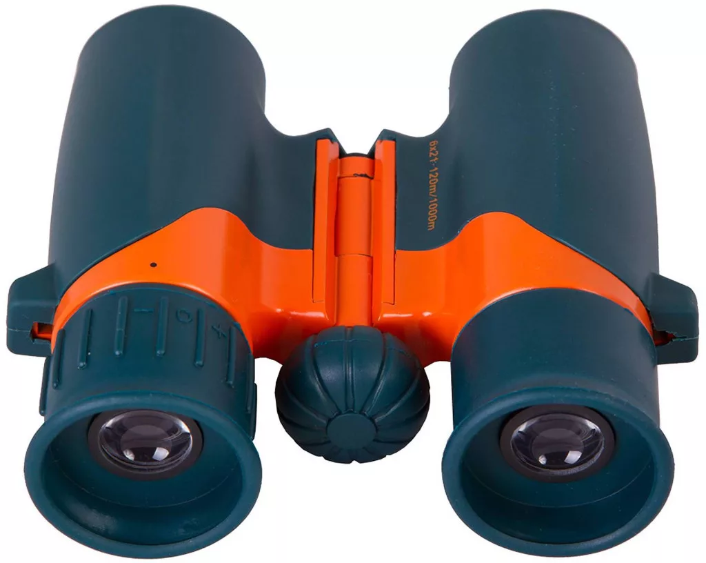 Levenhuk LabZZ B2 Tulajdonságok: -Daylight távcső gyerekeknek -Különösen kompakt és könnyű -Nagyítás: 6 x -Prizma típusa: tetőszél -bevonat: Tükrözésgátló -Első lencse átmérője: 21 mm -Szemek közötti távolság: 65-50 mm -Szélesség látvány 1000 m-nél: 120 m-Anyag: műanyag és gumi -Szín: zöld / narancs