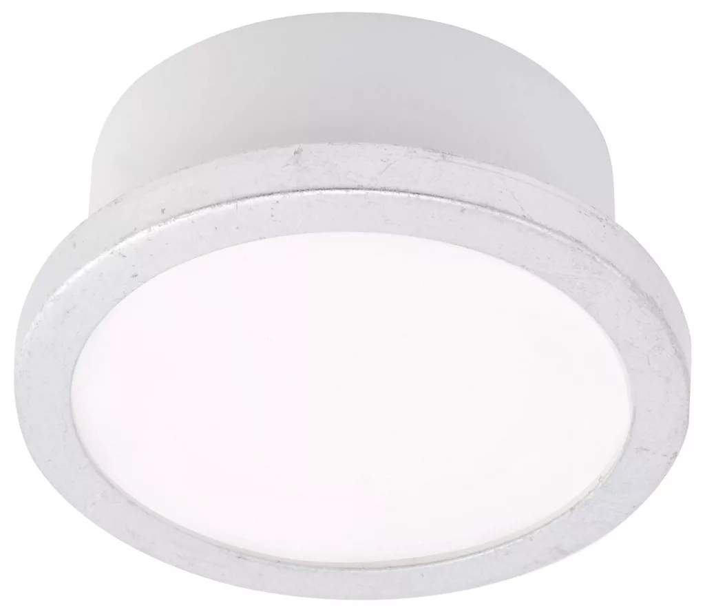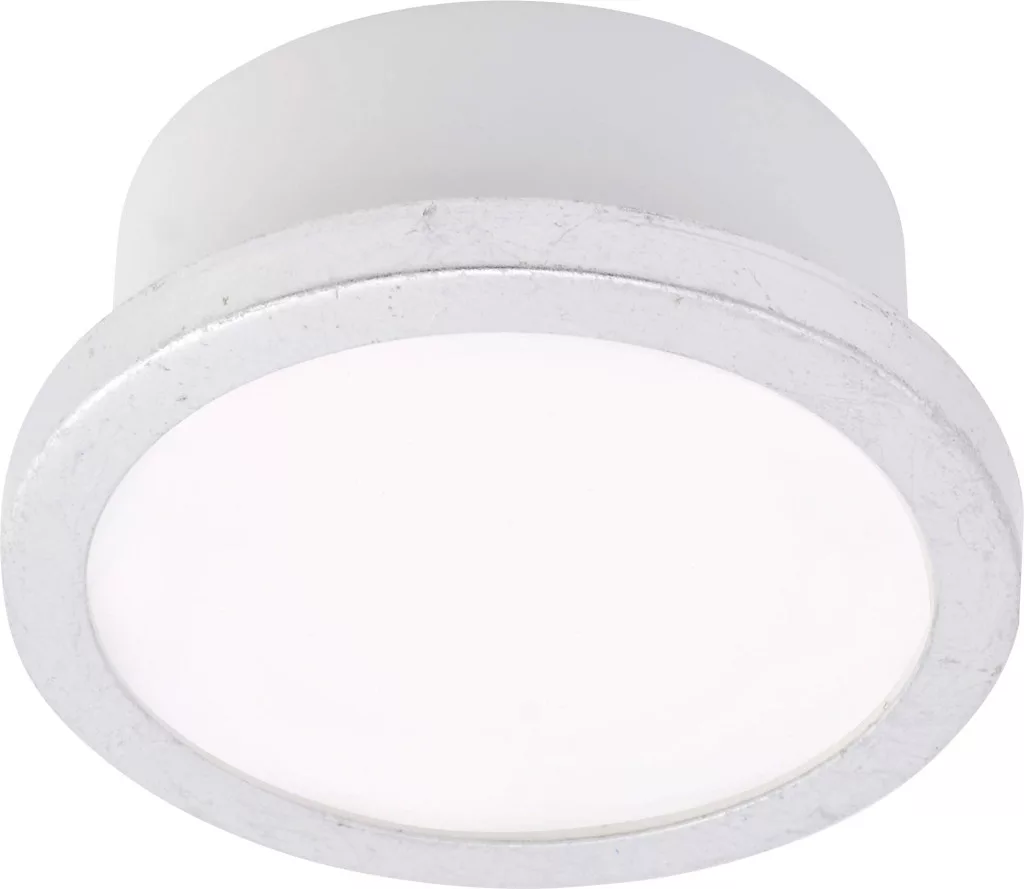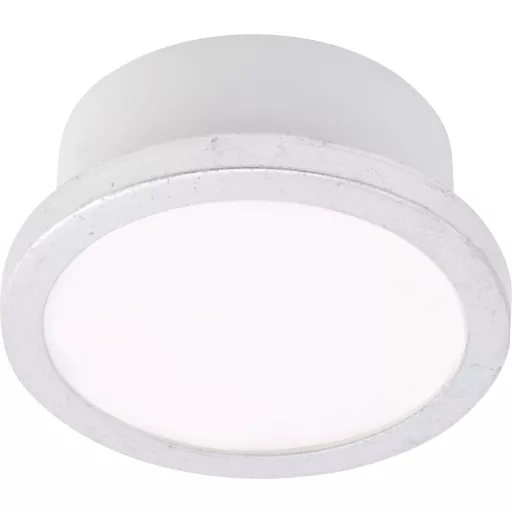 LM AQUA UNO kerek 110mm IP44 6W-500lm-GX53/827-40 mennyezeti lámpa. Ezüst lapos - Kompakt IP44-es mennyezeti lámpa szobavilágításhoz cserélhető, kerek LED izzóval és ezüst levél díszítő szegéllyel. Alacsony vakító fény a LED mini paneleknek és a PMMA diffúzoroknak köszönhetően. Fényszín meleg fehér/semleges fehér lámpakapcsolóval kapcsolható. Fehér lámpatestház GX53 lámpafoglalattal, csatlakozókapcsokkal és kábelbemenettel. Közvetlen csatlakozás AC 220-240V-hoz.