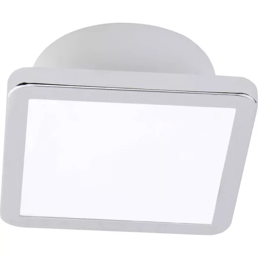 LM AQUA UNO négyzet 112mm IP44 6W-500lm-GX53/827-40 mennyezeti lámpa. Króm - Kompakt mennyezeti lámpa IP44 szobavilágításhoz cserélhető, négyzet alakú LED izzóval és króm díszítőszegéllyel. Alacsony vakító fény a LED mini paneleknek és a PMMA diffúzoroknak köszönhetően. Fényszín meleg fehér/semleges fehér lámpakapcsolóval kapcsolható. Fehér lámpatestház GX53 lámpafoglalattal, csatlakozókapcsokkal és kábelbemenettel. Közvetlen csatlakozás AC 220-240V-hoz.