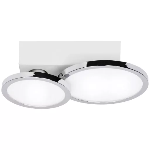 Műszaki adatok: 2021-es energiahatékonysági osztályok: n.rel. · Anyag: Alumínium, Műanyag · Foglalat: GU10 · Fényforrás típus: LED · Fényszín: 2700 K · Fényszín (fényforrás): Melegfehértől natúr fehérig · Fényáram összesen: 1200 lm · Gyártói szín: Króm · Kivitel (lámpa): Kerek · Méret, hossz: 53 mm · Stílus: Modern/dizájn · Teljesítmény: 16 W · Teljesítmény fényforrásonként: 8 W · Védelmi típus: IP44 · Átmérő: 145 mm · Üzemi feszültség: 230 V