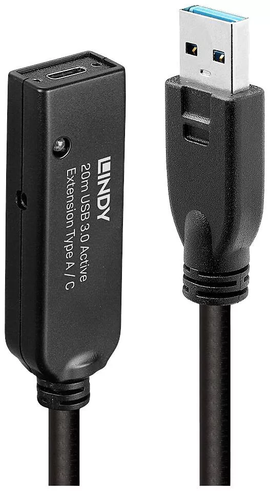 Használható önmagában - vagy még nagyobb távolságokra is - a Lindy Active Extension Systems Pro 8 vagy 10 m-es változatával (43157 vagy 43158 sz.).