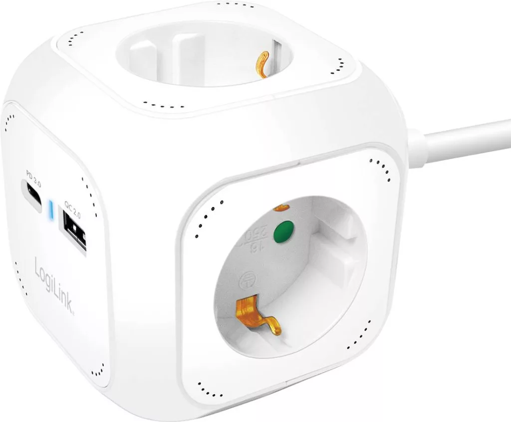 LogiLink LPS283U Elosztó kocka Fehér Védőérintkezős 1 db