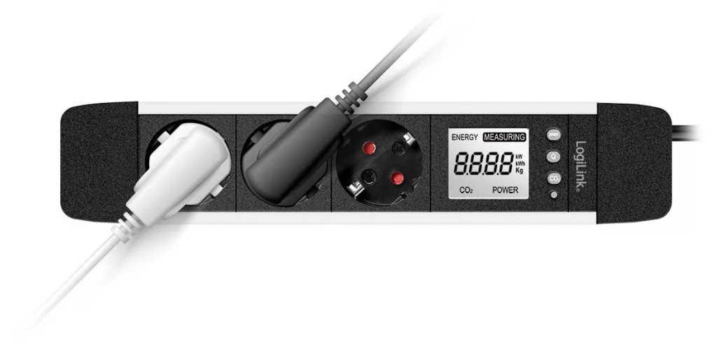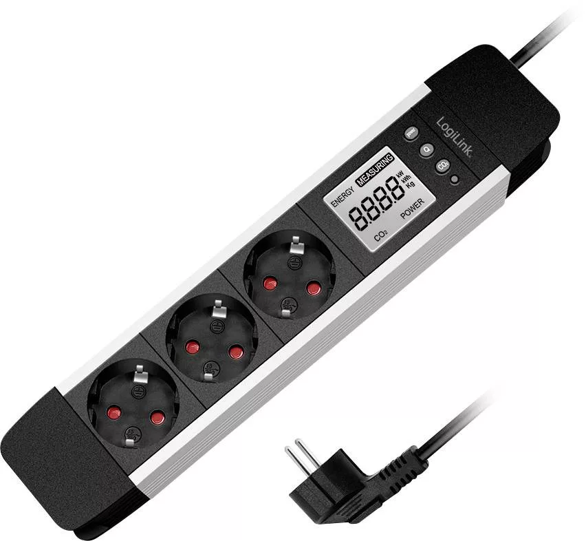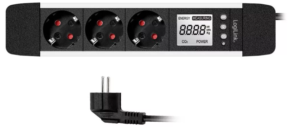3 utas elosztó, LCD kijelző, valós idejű energiafogyasztás/CO2-kibocsátás