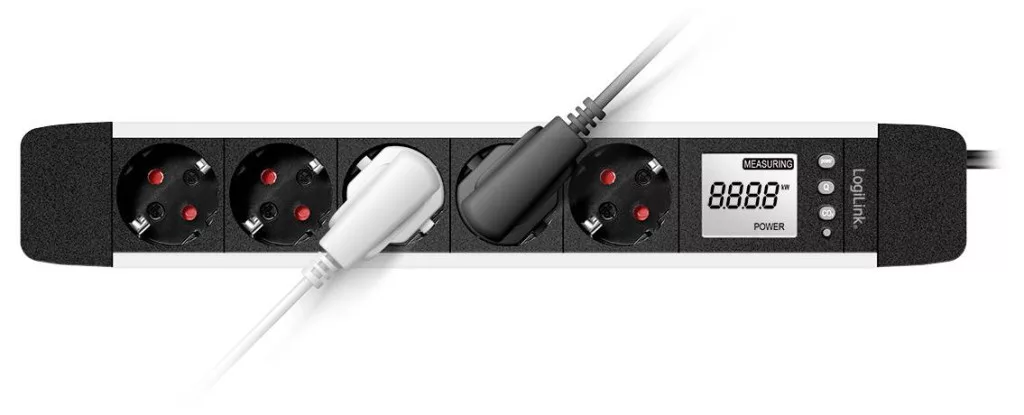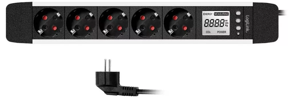 5-utas elosztó, LCD kijelző, valós idejű energiafogyasztás/CO2-kibocsátás