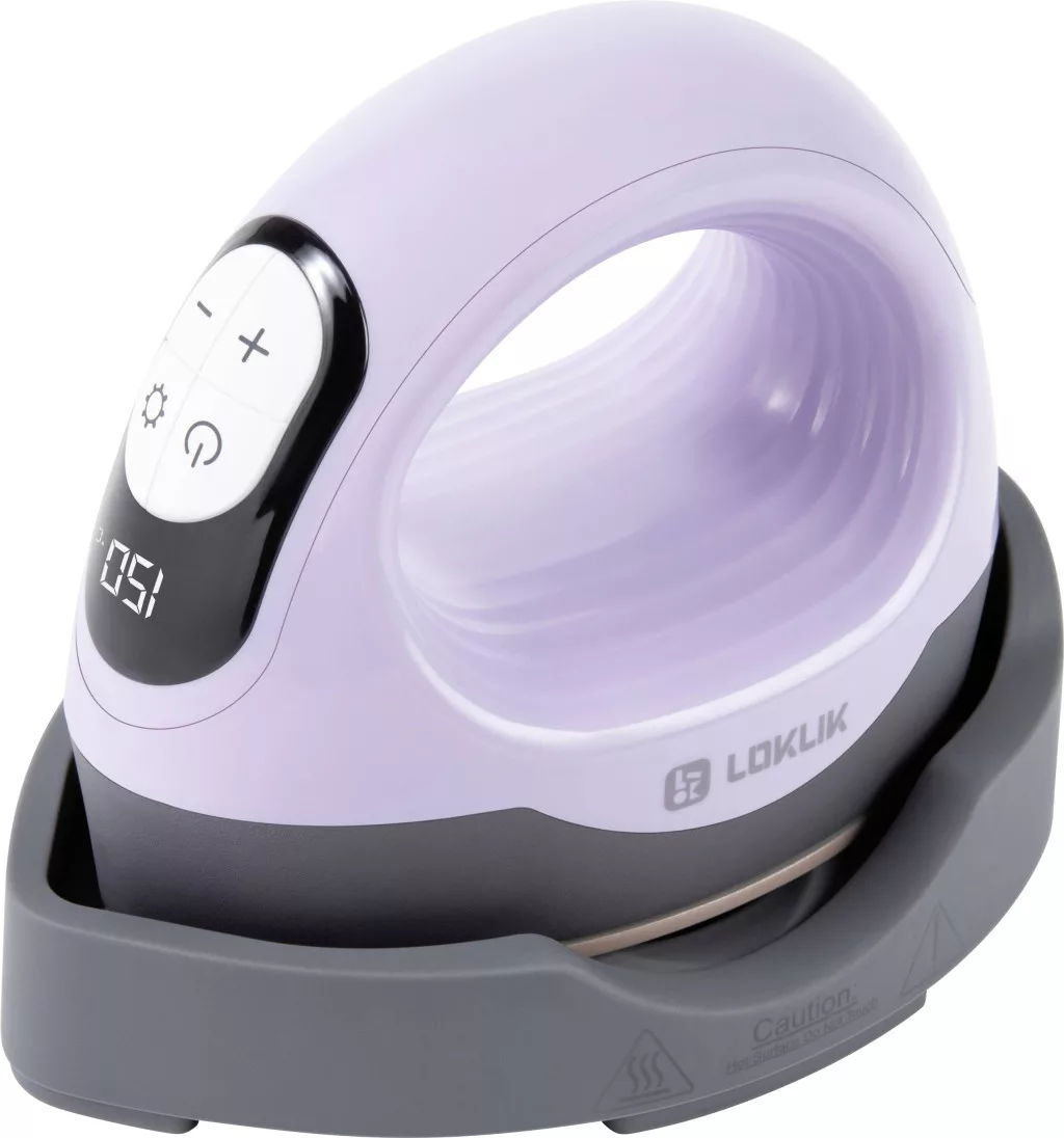 Intuitív képernyőVilágos beállítások: A LOKLiK ImPress™ Mini 3 intuitív, fejjel lefelé fordított kijelzőjét az egyszerűség és a kényelem jegyében tervezték. Tisztán megjeleníti a hőmérsékletet és az időzítő beállításait, és segít ezek nyomon követésében vasalás közben.