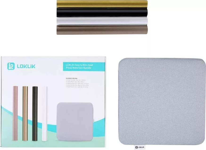 Ez a LOKLiK Mini vagy Easy Heat Press kezdőcsomag mindent tartalmaz, amire szüksége van az azonnali kezdéshez, és szabadjára engedi kreativitását!