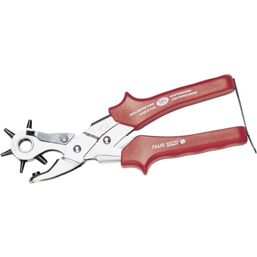 Jellemzők: Német ipari minőség · A himbás áttételnek köszönhetően akár 70%-kal kevesebb erőkifejtés szükséges a hagyományos forgó lyukasztófogóhoz képest. · Krómozott kivitel, lyukasztó-Ø megjelenítésével és műanyag markolatokkal.