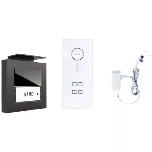 Műszaki adatok: Anyag (kültéri egység): Alumínium · Dallamok száma: 16 · Gyártói szín: Antracit, Fehér · Hangrendszer összetevők: Komplett készlet · Kaputelefon jellemzők: Világító névtábla · Kábelhossz (max.): 100 m · Méret (belső): 88x200x21 mm · Méret (külső készülék): 114x114x30 mm · Szerelési mód (belül): Falra szerelhető · Szerelési mód (kívül): Falra szerelhető · Szám (egységek/résztvevők): 1 · Tápellátás: Hálózatról üzemeltetett · Átviteli mód: Vezetékes