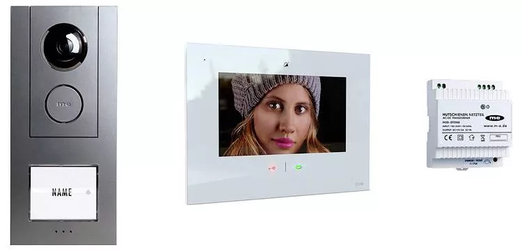 Technical specifications: Hangrendszer összetevők: Komplett készlet · Kaputelefon jellemzők: Világító névtábla · Kijelző típus: Érintőkijelző · Képernyő Ø (col): 7 Zoll · Látószög, vízszintes: 120 ° · Méret (belső): 220 × 160 × 28 mm · Méret (külső készülék): 77 × 97 × 56 mm · Szerelési mód (belül): Falra szerelhető · Szerelési mód (kívül): Falra szerelhető · Szín: Fehér (fényes),Antracit