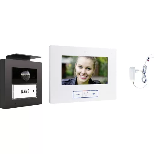 Technical specifications: Anyag (kültéri egység): Alumínium öntvény · Dallamok száma: 16 · Képernyő Ø (col): 7 Zoll · KépernyőØ (cm): 17.7 cm · Látószög, vízszintes: 180 ° · Méret (külső készülék): 114x114x48 mm · Szerelési mód (belül): Falra szerelhető · Szerelési mód (kívül): Falra szerelhető · Szám (egységek/résztvevők): 1 · Szín: Fehér-fekete