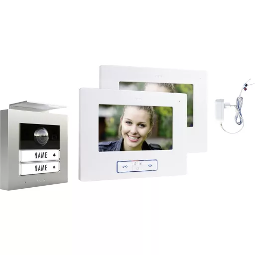 Technical specifications: Anyag (kültéri egység): Alumínium öntvény · Dallamok száma: 16 · Képernyő Ø (col): 7 Zoll · KépernyőØ (cm): 17.7 cm · Látószög, vízszintes: 180 ° · Méret (külső készülék): 114x114x48 mm · Szerelési mód (belül): Falra szerelhető · Szerelési mód (kívül): Falra szerelhető · Szám (egységek/résztvevők): 2 · Szín: Fehér,Antracit