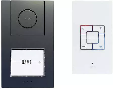 Innenstation:Alternatív megoldásként egyes csengőhangok mp3 formátumban microSD-kártyán keresztül (nem tartoznak a szállítási terjedelemhez), fokozatmentesen változtatható csengőhangerő, állítható beszédhangerő, RUHE gomb a csengőhang kikapcsolásához MONITOR gomb (néma figyelés) Intercom funkció felületre szerelése: csak 22 mm-es lapos Csatlakozás a padló csengő gombjával saját csengőhang a ház és a lakás ajtaja megkülönböztetéséhez.