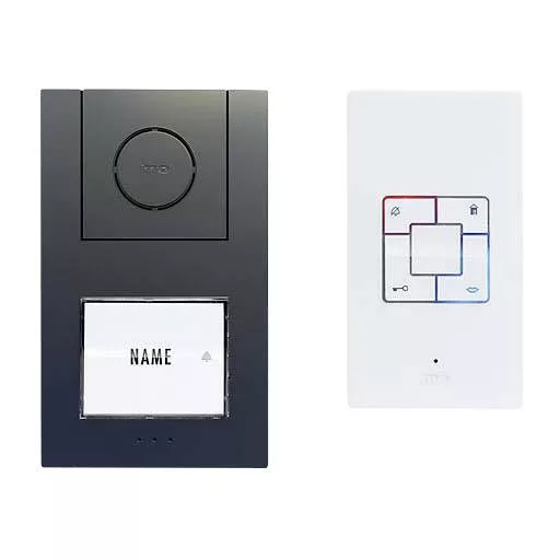 Audio ajtó kaputelefon egy családi házhoz, ajtónyitó jelzéssel és kaputelefon funkcióval. Kültéri állomás kiváló minőségű, öntött alumínium házban, antracit védőbevonattal