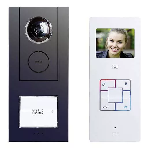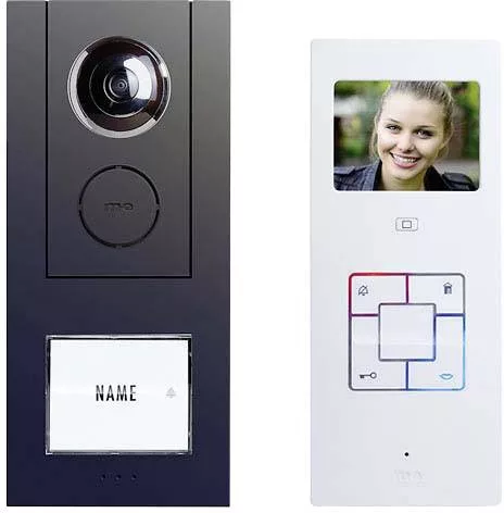 Videóajtó kaputelefon 8,6 cm (3,5 ") beltéri állomással, ajtónyitó jelzéssel és kaputelefon funkcióval. Kültéri állomás kiváló minőségű, öntött alumínium házban, antracit védőbevonattal