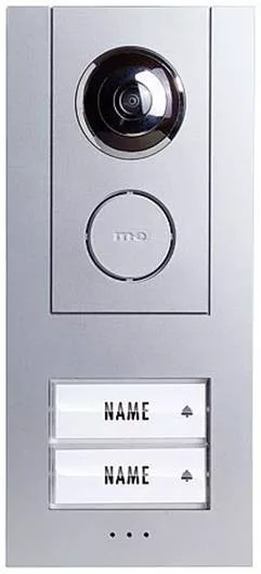 Videóajtó kaputelefon 2 család számára, 8,6 cm (3,5 ") beltéri állomásokkal, ajtónyitó jelzéssel és kaputelefon funkcióval. Kültéri állomás kiváló minőségű öntött alumínium házban, ezüst védőbevonattal.