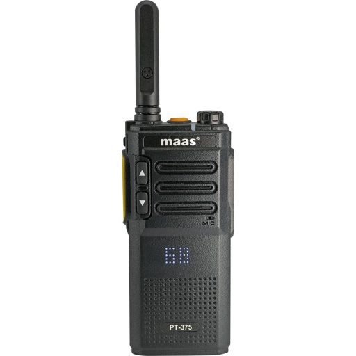 A Maas PT-375 a professzionális analóg PMR446 rádió belépője. Elegáns kialakításával és kiváló tulajdonságaival a Maas PT-375 a legtöbb alkalmazáshoz alkalmas. A készülék 56 csatornával van előre programozva. Már gyárilag számos, a piacon kapható készülékkel kombinálható.