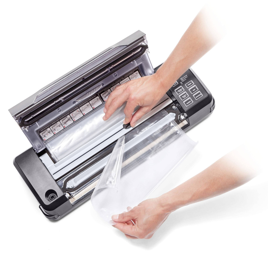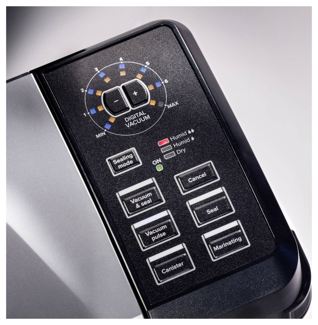Új digitális vákuumszabályozás Impulzus funkció a kézi vákuumvezérléshez Professzionális teljesítmény dupla szivattyúval Egyszerű zár és feloldó rendszer Praktikus betekintő ablak a táskák elhelyezéséhez ActiSeal3D - automatikus tömítő funkció Pácolás funkció Folyadékzáró, kivehető tálca Energiatakarékosság az ErP irányelv szerint Tartalmazza a tartálytömlőt, a vágót és a zsákot