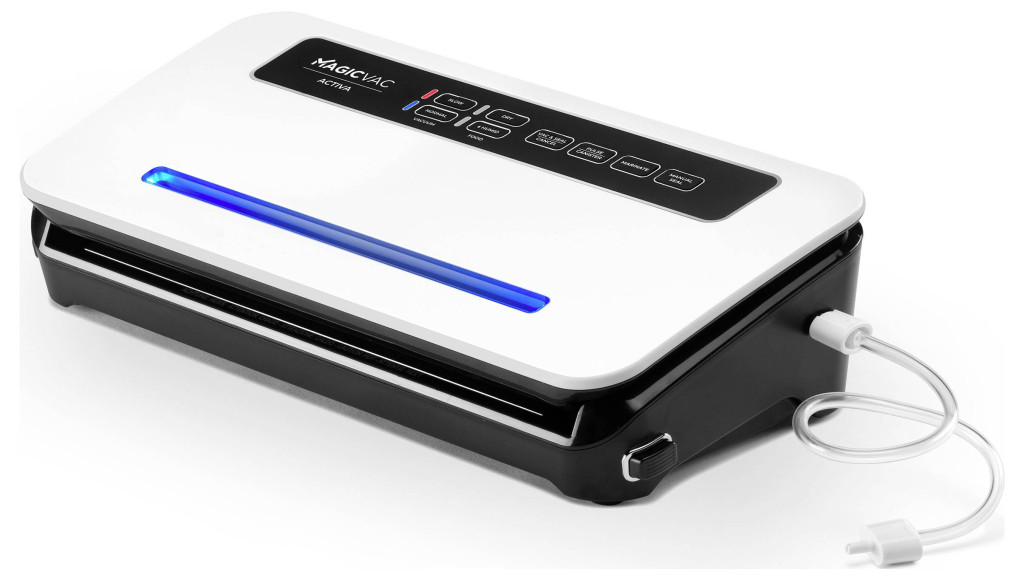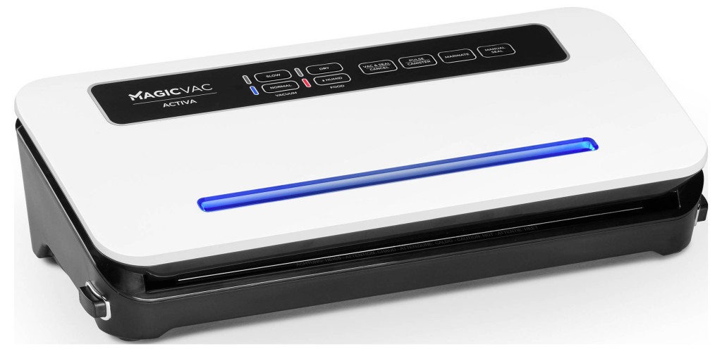 A MAGICVAC Activa fóliazáró gép megbízható megoldás az élelmiszerek tartósítására. Szabadalmaztatott technológiájával és nagy teljesítményű vákuumszivattyújával akár ötször tovább tartja frissen az élelmiszereket. Az extra széles, 2,5 mm-es tömítővarrat biztonságos tömítést biztosít, és megakadályozza a levegő bejutását.