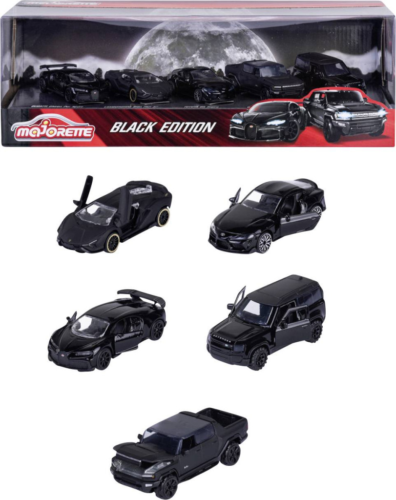 • Teljesen fekete külső – Exkluzív modellautók mélyfekete menőségben: A Majorette Black Edition 2.0 5 darab fekete fényezésű álomautót mutat be – 3 éves vagy annál idősebb versenyző bajnokok számára.