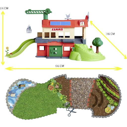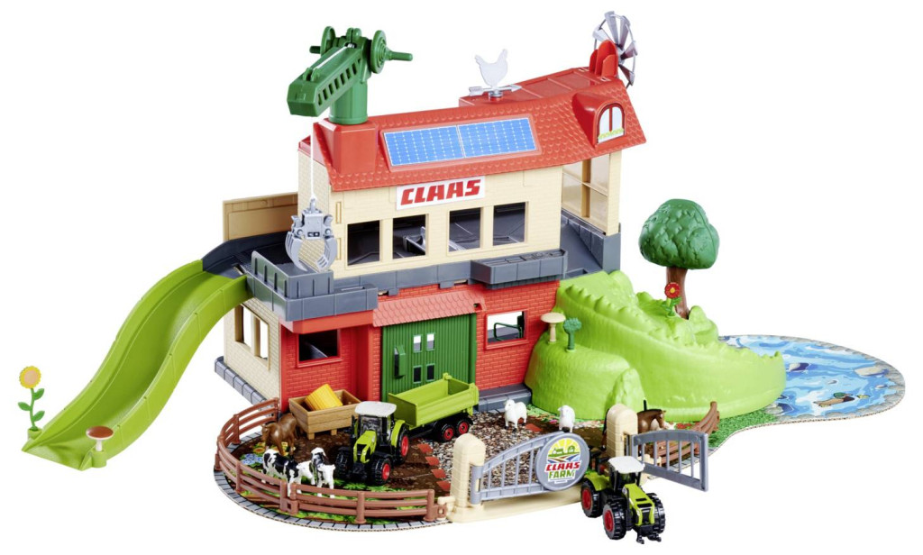 A nagyméretű mezőgazdasági készlet (56x36x24 cm) 3 nagy teljesítményű járművet tartalmaz hivatalosan engedélyezett CLAAS dizájnban: egy CLAAS Xerion 5000 traktort, egy CLAAS Arion 660 traktort és egy CLAAS mezőgazdasági pótkocsit. A játékautókon kívül 8 állat is járkál a farmudvaron – köztük tehenek, malacok, lovak és egy farmkutya. Olyan kiegészítőkkel, mint a szénabálák és egy extra kivágható játszótér, egy teljes farmtáj pillanatok alatt létrehozható órákig tartó szórakozással – tökéletes ajándék lányoknak és fiúknak egyaránt.