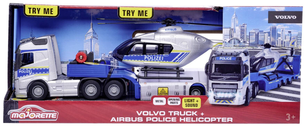 Majorette Volvo Truck + Airbus H135/H145 rendőrségi helikopter