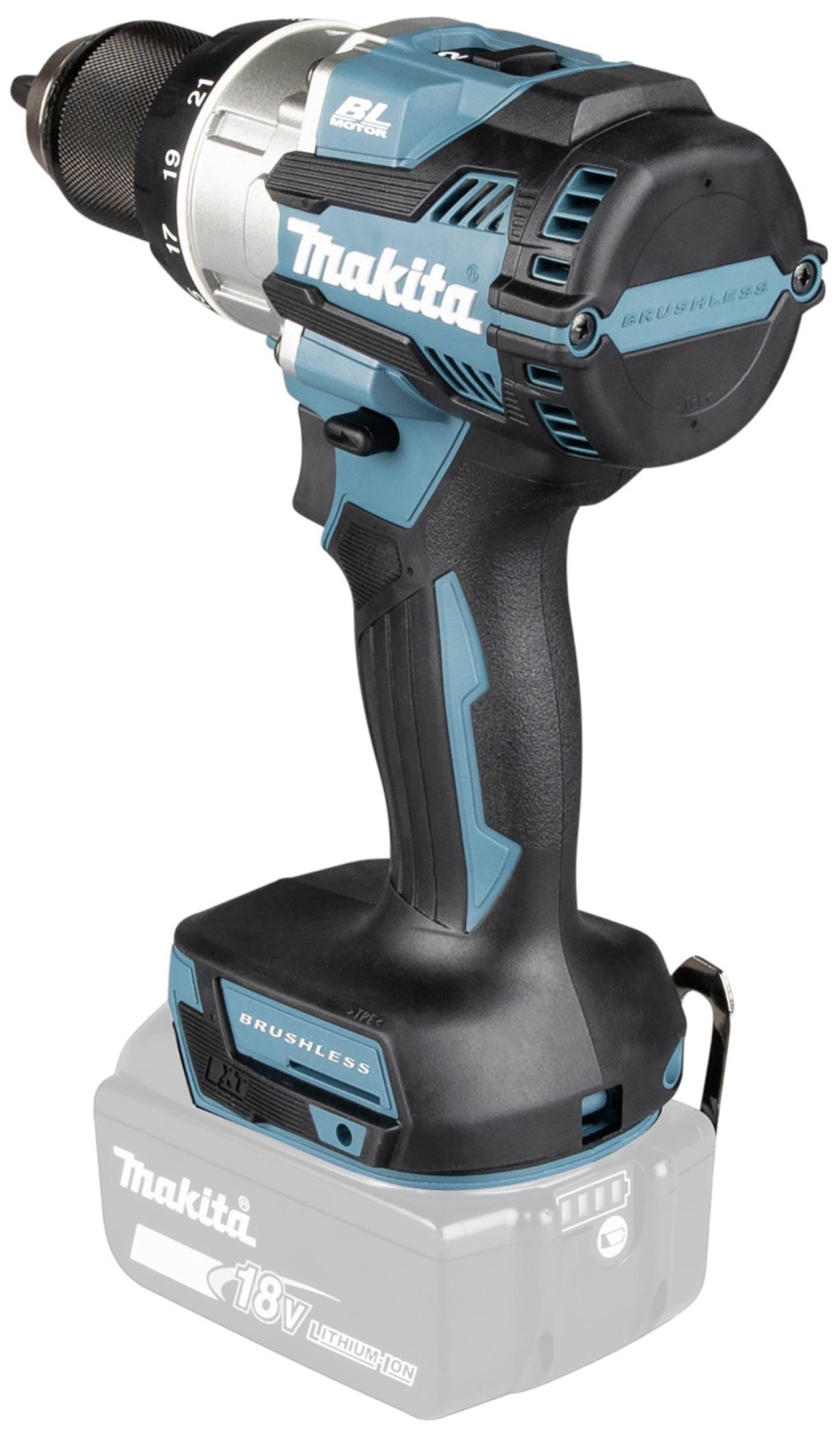 Kefe nélküli akkus fúró-csavarozó 18 V-tal és új tervezésű, nagyon rövid kialakítású sebességváltóval. A 73 Nm-es nyomaték 21 fokozatban állítható. A fényes dupla LED biztosítja a jó láthatóságot. Fába 38 mm ø-ig lyukak fúrhatók. A fémben lévő furatok átmérője 13 mm.