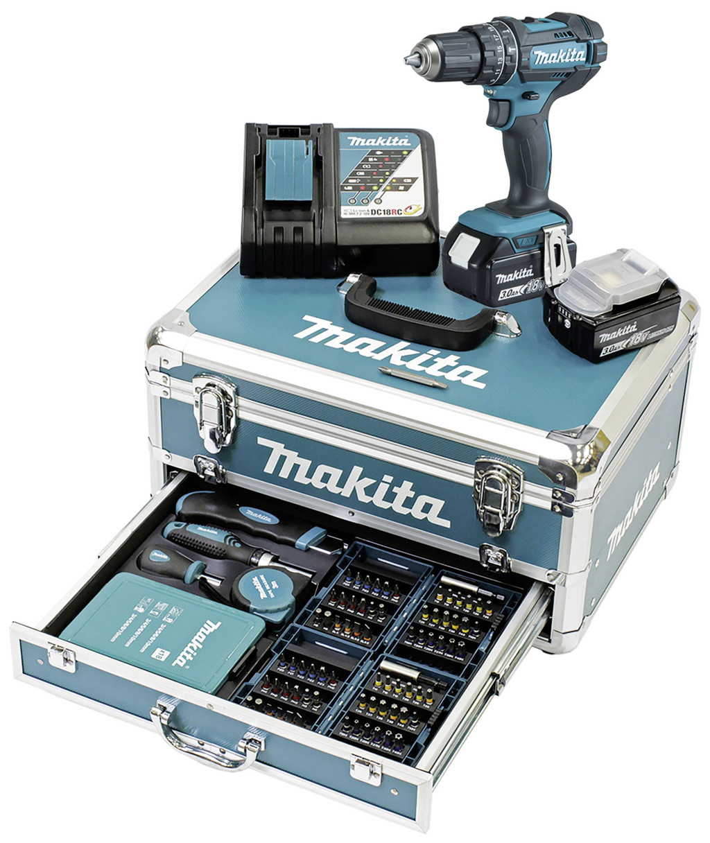 Szállítás tartalma: Akkus ütve fúrócsavarozó, DHP482RFX9, Fiókszekrény alumínium 197019-9, Gyorstöltő 195584-2, 2x akkumulátor 3,0 Ah 197599-5, Kulcs nélküli tokmány 13 mm 199154-9, Érintésvédő sapka 450128-8, dupla bit 784636-0, 2x 37 részes bitkészlet B28606 A szett tartalma: Bitek 25mm: 1x PZ0, 1x PZ1, 2x PZ2, 1x PZ3, 1x PH0, 1x PH1, 2x PH2, 1x PH3, 1x H3, 1x H4,1x H4,1x SL4, 1x SL4.5, 1x SL5.5, 1x SL6.5, 1x T10, 2x T15, 2x T20, 2x T25, 1x T27, 2x T30, 1x T40, 1x TH10, 1x TH15 TH0,1x2TH0 1x TH27, 1x TH30, 1x TH40, 1x mágneses bittartó, Fúrókészlet D-46202 18 darab, Lepattintható kés D-65713, Mérőszalag Q485, Kézi csavarhúzó Q488
