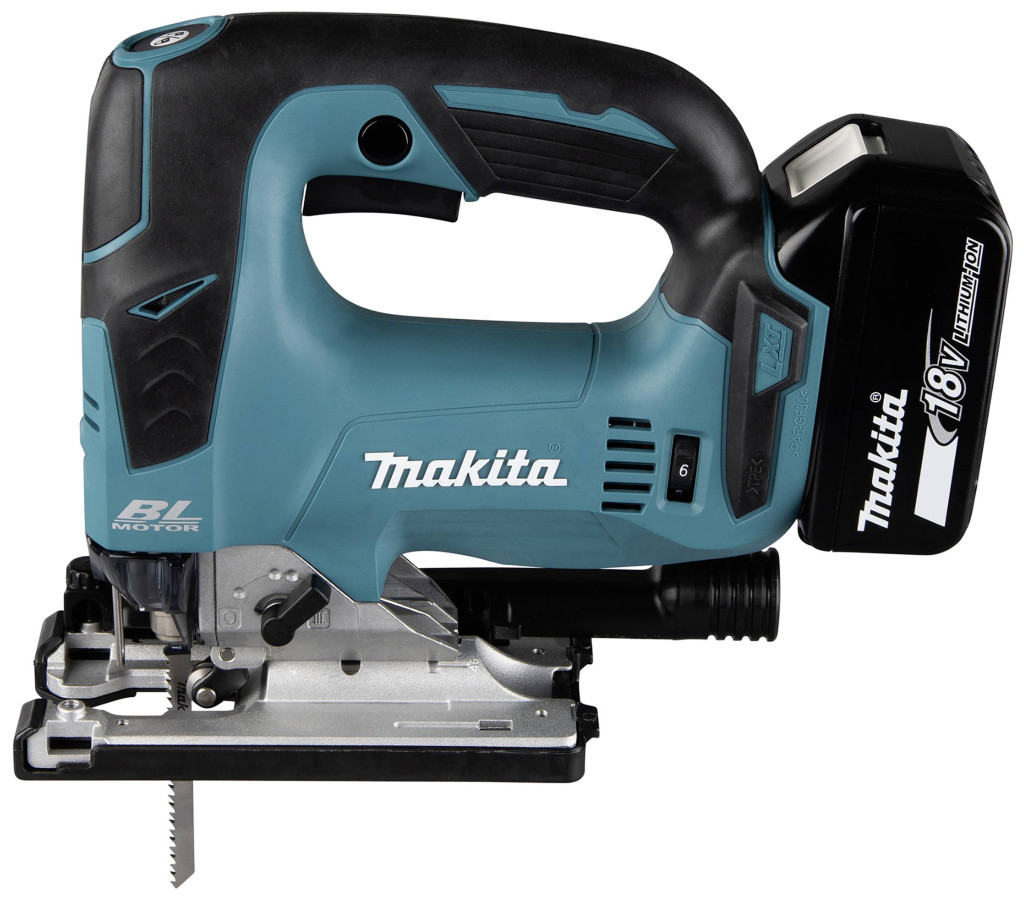 Jellemzők: Lítiumion technológia · Kefe nélküli motor · 3-szoros inga löketbeállítás plusz semleges helyzet · Fújó funkció · Az alaplap mindkét oldalon 45°-ban elfordítható · Szerszám nélküli fűrészlapcsere · Integrált LED-ek · Max. gérszög 45°.