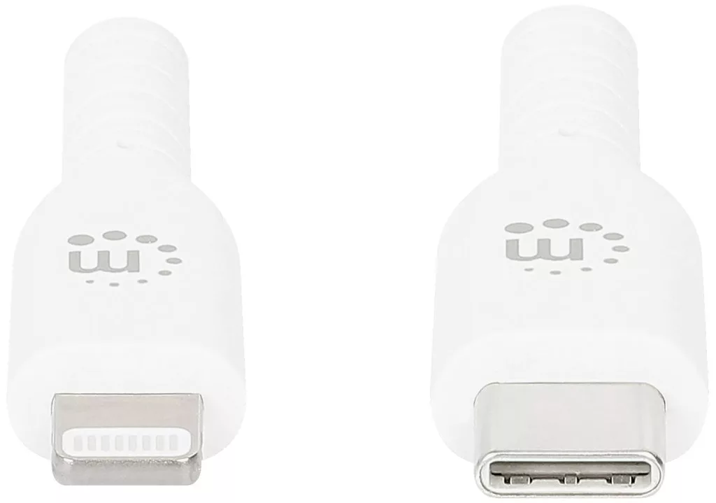 Töltse fel és szinkronizálja iPhone-ját, iPadjét, iPodját és más Lightning-kompatibilis mobileszközeit ezzel a Manhattan USB-C-Lightning kábellel.