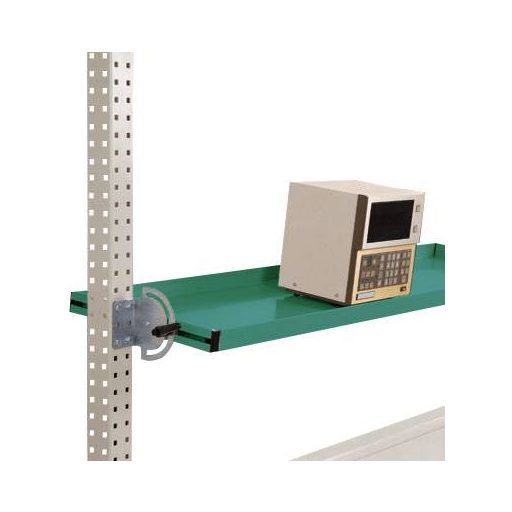 Az összes 2000 mm-es asztalszélességű PACKPOOL csomagolóasztal billenhető tárolókonzolja optimalizálja a munkateljesítményt azáltal, hogy szerszámokkal biztosítja a megfogási területet, és így megkönnyíti a munkavállalókat. A szilárd acéllemez szerkezetnek és a 38 mm-es oldalsó oldalsó szegélynek köszönhetően különféle apró alkatrészek, szerszámok és gépek szállíthatók. A tárolókonzol végtelenül dönthető, ezért optimálisan felszerelhető például tárolódobozokkal. Végtelenül beállítható a mélység is, így még a kiálló termékeket is jól lehet elhelyezni, vagy további munkaterületet lehet létrehozni. A billenthető tárolókonzol az acélszerkezeti portálokhoz van rögzítve. A billenthető tárolókonzol egyenletesen elosztott 40 kg-os teherrel berakható. A tárolókonzol teljes szélessége 1838 mm, a teljes magassága 38 mm. Használható mélysége 195 mm. A billenthető tárolókonzol kiváló minőségű, porfestékkel bevonva, szürke zöld HF 0001 színben.