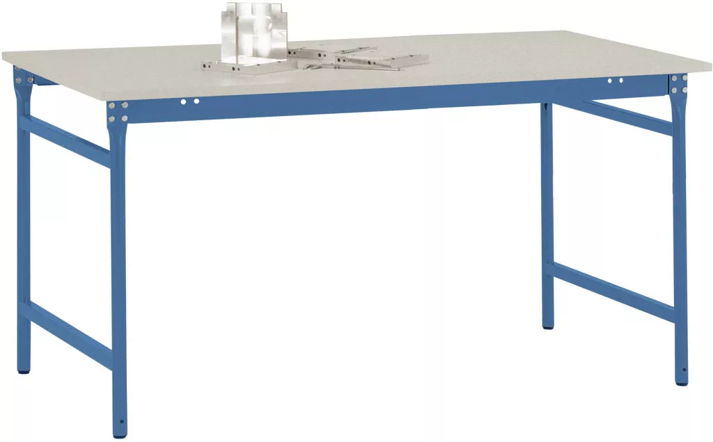 A BASIS helyhez kötött oldalsó asztal melamin asztallaplal olcsó és rugalmas asztal különféle felhasználásokhoz. A 350 kg teherbíróképesség egyenletes rakományeloszlással megfelel az egyszerű mechanikai, gyártási vagy tesztelési munkák követelményeinek a gyártás, tárolás, összeszerelés, laboratóriumok és szállítás terén. Az egyszerű szerelésnek köszönhetően az oldalsó asztal azonnal készen áll a használatra. Az asztal erős acél kerettel van felszerelve, 33 mm-es gömbcsővel és 60 mm magas keretekkel. A keret kiváló minőségű, porcel bevonatú, ragyogó kék RAL 5007 anyagból. A BASIS oldalsó asztal szélessége 1000 mm, mélysége 600 mm és teljes magassága 780 mm, továbbá a teljes BASIS oldalsó asztal padlószintező csavarokkal rendelkezik, amelyek akár 10 mm-es egyenetlenségeket is képesek kompenzálni. Az oldalsó asztalhoz világosszürke melamin asztallap tartozik. A 22 mm vastag, 1000 mm széles és 600 mm mély melamin asztallap egy E1 (1. kibocsátási osztály) háromrétegű forgácslap melamingyanta bevonattal rendelkezik, mindkét oldalán finom szerkezetű. A melamin asztallap nagyrészt ellenáll a kopásnak, a karcolásoknak és a vakító fénynek. A sima felület könnyen tisztítható. Az asztallap munkavégzéshez magasabb mechanikai és kémiai követelmények nélkül is alkalmazható.