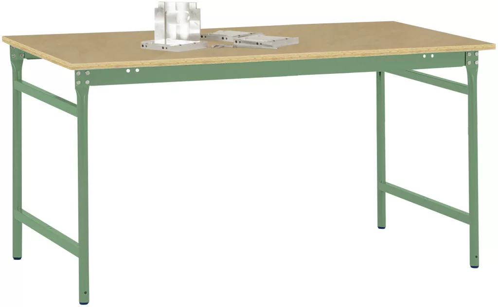 A BASIS álló asztali asztal és multiplex asztallap egy olcsó és rugalmas asztal számos felhasználásra. A 350 kg teherbíróképesség egyenletes rakományeloszlással megfelel az egyszerű mechanikai, gyártási vagy tesztelési munkák követelményeinek a gyártás, tárolás, összeszerelés, laboratóriumok és szállítás terén. Az egyszerű szerelésnek köszönhetően az oldalsó asztal azonnal készen áll a használatra. Az asztal erős acél kerettel van felszerelve, 33 mm-es gömbcsővel és 60 mm magas keretekkel. A keret kiváló minőségű, porréteggel bevont, zöld színű RAL 6011 anyagból készül. A BASIS oldalsó asztal szélessége 1250 mm, mélysége 600 mm és teljes magassága 780 mm, továbbá a teljes BASIS oldalsó asztal padlószintező csavarokkal rendelkezik, amelyek akár 10 mm-es egyenetlenségeket is képesek kompenzálni. Az oldalsó asztal olajos multiplex asztallapral van ellátva. A 22 mm vastag, 1250 mm széles és 600 mm mélységű multiplex asztallap I / III minőségi osztályú bükk többrétegű táblából áll, a DIN 68705 2. részének megfelelően. Az asztallap keresztragasztott vízálló, nagy nyomás alatt, a DIN 68705 IF (IW67) szerint, és környezetbarát módon van olajozva. Minden él és sarok meg van őrölve és lemetszett. Igény szerint lehetséges a multiplex lemez tiszta bevonása. A multiplex asztallapot mindenütt használják, ahol nagy mechanikai terhelésekre van szükség, például az összeszerelési és gyártási területen. A ragasztás miatt az asztallap nedves anyagokkal történő alkalmi munkákhoz is használható.