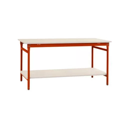 A teljes BASIS álló asztal, melamin felső és közbenső polccal, olcsó és rugalmas asztal különféle felhasználásokhoz. A 350 kg teherbíróképesség egyenletes rakományeloszlással megfelel az egyszerű mechanikai, gyártási vagy tesztelési munkák követelményeinek a gyártás, tárolás, összeszerelés, laboratóriumok és szállítás terén. Takarítson meg időt és pénzt egy kipróbált és bevizsgált teljes verzió megrendelésével. Az egyszerű szerelésnek köszönhetően az oldalsó asztal azonnal készen áll a használatra. A teljes BASIS oldalsó asztal köztes padlója egy 19 mm-es világosszürke melaminlemezből készül, szürke műanyag szegéllyel, mint kiegészítő rakodási terület. A stabil acélkeret 33 mm Ø kör alakú csőtalpból és 60 mm magas keretből áll. A keret kiváló minőségű, porcelánval bevont, vörös narancs RAL 2001. A BASIS oldalsó asztal szélessége 750 mm, mélysége 500 mm és teljes magassága 780 mm. Ezenkívül a teljes BASIS oldalsó asztal padlószintező csavarokkal rendelkezik, amelyek akár 10 mm-es egyenetlenségeket is képesek ellensúlyozni. A világosszürke melamin asztallap 22 mm vastag, 750 mm széles és 500 mm mély melamingyanta bevonattal rendelkezik az E1 (1. kibocsátási osztály) háromrétegű forgácslapon, mindkét oldalán finom szerkezetű. A melamin asztallap nagyrészt ellenáll a kopásnak, a karcolásoknak és a vakító fénynek. A sima felület könnyen tisztítható. Az asztallap munkavégzéshez magasabb mechanikai és kémiai követelmények nélkül is alkalmazható.