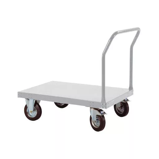 A tökéletes és hatékony munkafolyamatokhoz kifejlesztett professzionális építkezés. A TRANSOMOBIL platform kocsi stabil felépítésének köszönhetően széles körű szállítási áruk szállítására alkalmas mindennapi használatra. Így alkalmazottait mentesítik a fizikai terheléstől, és az egyes szállítási útvonalak kombinálhatók. A színek sokfélesége miatt, 10 színben, azonos áron, a TRANSOMOBIL kocsik az egyes vállalati területekhez rendelhetők, vagy a színkülönbségek miatt változatosságot nyújtanak a gyártásban és gyártásban. A TRANSOMOBIL kocsi platformja 1,5 mm vastag acéllemezből készül. A peron szélessége 740 mm és mélysége 1013 mm. Az emelőkosár 2 forgó és rögzített görgővel van ellátva, szilárd gumiból, robusztus acéllemez felnikkel. A kerekek mérete 125 x 37 mm (Ø x szélesség). Az Ön biztonsága érdekében mindkét forgógörgő fékkel van felszerelve az EN 1757-3 szerint. A tömör gumi gumiabroncsoknak köszönhetően a kocsi különösen gyengéd a padlón és zajos. Egyéb tekercsminták kérésre szállíthatók. Az emelőkosár 34 mm átmérőjű, cső alakú acélból készült praktikus tolókarral van felszerelve, amely megkönnyíti a kocsi kormányzását. A TRANSOMOBIL platform kocsi magassága 880 mm, szélessége 740 mm és mélysége 1013 mm. Lemezacélból készül, és porszórt, jó minőségű alumínium ezüstből készül, hasonló a RAL 9006-hoz. A TRANSOMOBIL platform kocsi teherbírása 200 kg. Különleges méretek, de 5 darab kérésre lehetséges, ugyanúgy, mint az elektromosan vezető változatok.