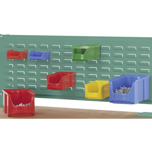 Az összes CANTOLAB és ALU munkaasztalhoz használt réselt szerszámlemez a nyitott elülső tárolóedények rögzítéséhez használható tartócsavarral vagy horoggal elérhető helyen, így optimalizálva a kis alkatrészekhez, szerszámokhoz és egyéb anyagokhoz való hozzáférést. Ez növeli a munkavállalók munkateljesítményét is. A hasított szerszámlapot a CANTOLAB és az ALU alumínium építési portálokhoz kell rögzíteni. A sajtoló rés lemez 50 mm résmérettel rendelkezik. A réselt lemezek 22 mm-es rácsban vannak elrendezve. A réselt lemez acéllemezből készül, teljes szélessége 1996 mm, teljes mélysége 24,5 mm és teljes magassága 350 mm. A használható magasság 300 mm. A hasított sajtolólemez kiváló minőségű, porfestékkel bevonva, szürke zöld HF 0001 színben.