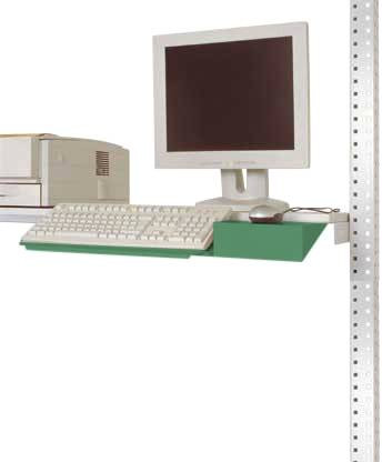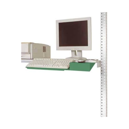 Billentyűzet-támogatás a PACKPOOL csomagolóasztalokhoz. Ne pazarold az információt! A monitor támogatásával a dokumentumok közvetlenül láthatóak a munkahelyen. Értékes időt is megtakaríthat az elektronikus visszajelzés révén. A klasszikus billentyűzet-támogatást közvetlenül az EDP-kapcsolat biztosítására használják közvetlenül a munkahelyen. Csatlakoztatva van a tárolókonzolhoz. A billentyűzettartó billentyűzetlábnyomának szélessége 490 mm és mélysége 200 mm. A szállítás tartalmaz egy 200 mm szélességű és 200 mm mélységű egérfelületet is. A teljes szélesség 690 mm, a teljes mélység 227 mm. A monitor tartója acélból készült és elöl felhajtva. A billentyűzet és az egér dőlésszöge 20 °. A monitor tartója porszórt, zöld színű RAL 6011 színű.