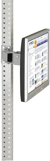UNIVERSAL munkaasztalokhoz és PROFI munkapadokhoz. Ne pazarold az információt! A monitor támogatásával a dokumentumok közvetlenül láthatóak a munkahelyen. A tényleges munkaterület szabadon marad. A klasszikus, 100 mm-es VESA csatlakozó adapterrel ellátott monitor-tartót a lapos képernyők közvetlenül a munkahelyre történő rögzítéséhez használják. A csuklós kar hossza 80 mm. A 80 mm-es kinyúlású monitortartó ideális a zárt térben történő munkavégzéshez. A monitor hordozójának terhelhetősége max. 20 kg. A monitor tartójának mélysége 190 mm, szélessége 100 mm és magassága 100 mm. Acélból készül, és a RAL 9006-hoz hasonlóan kiváló minőségű porbevonattal rendelkezik alumínium-ezüstben.