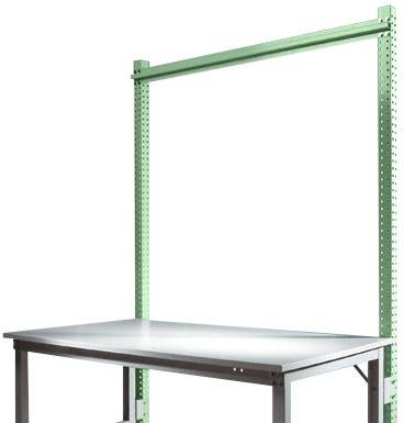 Az építési portálok csak egy teljesen kidolgozott munkahelyet dolgoznak fel a munkaasztalra. Használja az asztallap feletti munkaterületet szerszámok, eszközök vagy munkahelyi világítás céljából. Ez olyan egységet hoz létre, amely hatékonyan és ergonómiailag használható. Az 1500 mm használható magasságú és 2100 mm teljes magasságú kiegészítő portál minden 1000 mm-es asztalszélességű és 800 mm-es asztalmélységű UNIVERSAL + PROFI Spezial munkaasztalon használható. A kiegészítő portál kiegészítő oszlopból és kereszttartó stabilizátorból áll. A kiváló minőségű porréteggel bevont, felületre szerelt portál zöld színű RAL 6011-es sarok acélból készül, három oldalán perforálva, 30 mm-es rácsban. Szerkezeti elemek, például perforált panelek, hasított panelek, tárolókonzolok stb. Rögzítésére szolgál. Ezek magassága beállítható egy 30 mm-es rácsban. A felépítmény-portál 120 kg-os teherbírású lehet. A felépítmény-portál használható magassága 1500 mm, alkatrész-szélessége 996 mm és mélysége 55 mm. Az egyes építőoszlopok szélessége 60 mm (méretek beleértve az asztalkerethez való rögzítéshez szükséges szerelvényeket). Figyelem! A kiegészítő portálhoz alapportál szükséges (UNIVERSAL + PROFI Spezial termékszám: ZB3793.6011).