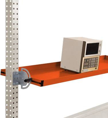 Az összes UNIVERSAL munkaasztal és a PROFI munkapadok 1750 mm szélességű asztali billenthető tárolókonzolját a munka teljesítményének optimalizálására használják, a szerszámokkal a megfogási területen biztosítva ezzel a munkavállalókat fizikailag. A stabil acéllemez szerkezetnek és a 38 mm-es oldalsó felületnek minden oldalán különféle apró alkatrészek, szerszámok és gépek biztosíthatók. A kiemelés itt: A billenthető tárolókonzol nagyon gyorsan és egyszerűen, a szerszám nélküli dugaszolható szerelvény segítségével rögzíthető a MultiPlan szerelési portálokhoz. Az egyszerű összeszerelés mellett ez biztosítja a gyors áthelyezést is a munkahely lehetséges átalakítása esetén. A billenthető tárolókonzol természetesen biztosított a horgok akaratlan ütközése és kiszakadása ellen. Ezt további biztonsági csapok biztosítják, amelyek biztosítják a leesés elleni biztonságot. Ön is részesülhet az eszköz nélküli Aubau plug-in rendszer előnyeiből! A tárolókonzol teljes szélessége 1589 mm, a teljes mélység 200 mm és a teljes magasság 38 mm. Használható mélysége 195 mm. A billenthető tárolókonzol kiváló minőségű, porréteggel bevont, piros-narancssárga RAL 2001 színben. A dönthető tárolókonzol az UNIVERSAL és a PROFI acélszerkezeti portálokhoz van rögzítve. Teherbírása 35 kg. A tárolókonzol végtelenül dönthető, ezért optimálisan felszerelhető például tárolódobozokkal. Végtelenül beállítható a mélység is, így még a kiálló termékek is jól elhelyezhetők, vagy további munkaterület teremthető.