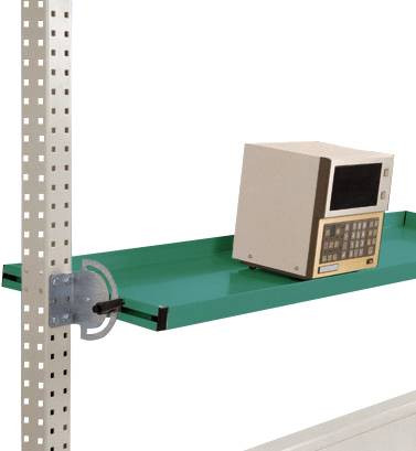Az összes UNIVERSAL munkaasztalhoz és 1500 mm-es asztalszélességű PROFI munkapadhoz billenthető tárolókonzolt használják a munka teljesítményének optimalizálására, a szerszámok behelyezésével a fogóterületen, és ezáltal megkönnyítik az alkalmazottakat fizikailag. A stabil acéllemez szerkezetnek és a 38 mm-es oldalsó felületnek minden oldalán különféle apró alkatrészek, szerszámok és gépek biztosíthatók. A kiemelés itt: A billenthető tárolókonzol nagyon gyorsan és egyszerűen, a szerszám nélküli dugaszolható szerelvény segítségével rögzíthető a MultiPlan szerelési portálokhoz. Az egyszerű összeszerelés mellett ez biztosítja a gyors áthelyezést is a munkahely lehetséges átalakítása esetén. A billenthető tárolókonzol természetesen biztosított a horgok akaratlan ütközése és kiszakadása ellen. Ezt további biztonsági csapok biztosítják, amelyek biztosítják a leesés elleni biztonságot. Ön is részesülhet az eszköz nélküli Aubau plug-in rendszer előnyeiből! A tárolókonzol teljes szélessége 1339 mm, a teljes mélység 500 mm és a teljes magasság 38 mm. Használható mélysége 495 mm. A billenthető tárolókonzol kiváló minőségű, porfestékkel bevonva, szürke zöld HF 0001 színben. A dönthető tárolókonzol az UNIVERSAL és a PROFI acélszerkezeti portálokhoz van rögzítve. Teherbírása 35 kg. A tárolókonzol végtelenül dönthető, ezért optimálisan felszerelhető például tárolódobozokkal. Végtelenül beállítható a mélység is, így még a kiálló termékek is jól elhelyezhetők, vagy további munkaterület teremthető.