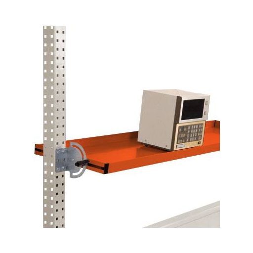 Az összes UNIVERSAL munkaasztalhoz és 1500 mm-es asztalszélességű PROFI munkapadhoz billenthető tárolókonzolt használják a munka teljesítményének optimalizálására, a szerszámok behelyezésével a fogóterületen, és ezáltal megkönnyítik az alkalmazottakat fizikailag. A stabil acéllemez szerkezetnek és a 38 mm-es oldalsó felületnek minden oldalán különféle apró alkatrészek, szerszámok és gépek biztosíthatók. A kiemelés itt: A billenthető tárolókonzol nagyon gyorsan és egyszerűen, a szerszám nélküli dugaszolható szerelvény segítségével rögzíthető a MultiPlan szerelési portálokhoz. Az egyszerű összeszerelés mellett ez biztosítja a gyors áthelyezést is a munkahely lehetséges átalakítása esetén. A billenthető tárolókonzol természetesen biztosított a horgok akaratlan ütközése és kiszakadása ellen. Ezt további biztonsági csapok biztosítják, amelyek biztosítják a leesés elleni biztonságot. Ön is részesülhet az eszköz nélküli Aubau plug-in rendszer előnyeiből! A tárolókonzol teljes szélessége 1339 mm, a teljes mélység 500 mm és a teljes magasság 38 mm. Használható mélysége 495 mm. A billenthető tárolókonzol kiváló minőségű, porréteggel bevont, piros-narancssárga RAL 2001 színben. A dönthető tárolókonzol az UNIVERSAL és a PROFI acélszerkezeti portálokhoz van rögzítve. Teherbírása 35 kg. A tárolókonzol végtelenül dönthető, ezért optimálisan felszerelhető például tárolódobozokkal. Végtelenül beállítható a mélység is, így még a kiálló termékek is jól elhelyezhetők, vagy további munkaterület teremthető.