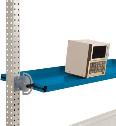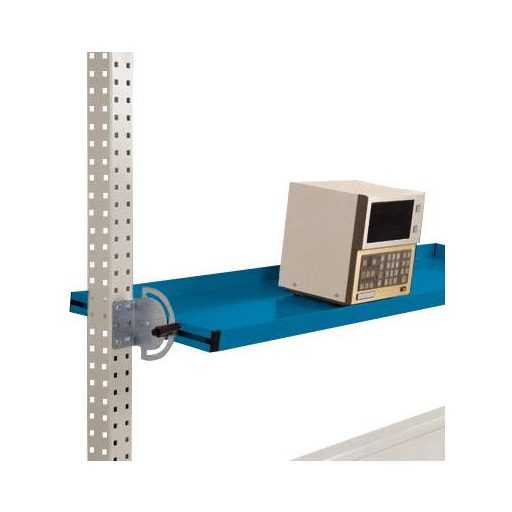 Az összes UNIVERSAL munkaasztalhoz és 1500 mm-es asztalszélességű PROFI munkapadhoz billenthető tárolókonzolt használják a munka teljesítményének optimalizálására, a szerszámok behelyezésével a fogóterületen, és ezáltal megkönnyítik az alkalmazottakat fizikailag. A stabil acéllemez szerkezetnek és a 38 mm-es oldalsó felületnek minden oldalán különféle apró alkatrészek, szerszámok és gépek biztosíthatók. A kiemelés itt: A billenthető tárolókonzol nagyon gyorsan és egyszerűen, a szerszám nélküli dugaszolható szerelvény segítségével rögzíthető a MultiPlan szerelési portálokhoz. Az egyszerű összeszerelés mellett ez biztosítja a gyors áthelyezést is a munkahely lehetséges átalakítása esetén. A billenthető tárolókonzol természetesen biztosított a horgok akaratlan ütközése és kiszakadása ellen. Ezt további biztonsági csapok biztosítják, amelyek biztosítják a leesés elleni biztonságot. Ön is részesülhet az eszköz nélküli Aubau plug-in rendszer előnyeiből! A tárolókonzol teljes szélessége 1339 mm, a teljes mélység 500 mm és a teljes magasság 38 mm. Használható mélysége 495 mm. A billenthető tárolókonzol kiváló minőségű, porcel bevonatú, ragyogó kék RAL 5007 színű. A dönthető tárolókonzol az UNIVERSAL és a PROFI acélszerkezeti portálokhoz van rögzítve. Teherbírása 35 kg. A tárolókonzol végtelenül dönthető, ezért optimálisan felszerelhető például tárolódobozokkal. Végtelenül beállítható a mélység is, így még a kiálló termékek is jól elhelyezhetők, vagy további munkaterület teremthető.
