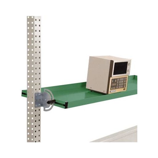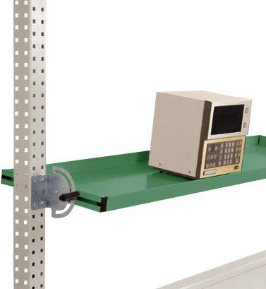 Az összes UNIVERSAL munkaasztalhoz és 1500 mm-es asztalszélességű PROFI munkapadhoz billenthető tárolókonzolt használják a munka teljesítményének optimalizálására, a szerszámok behelyezésével a fogóterületen, és ezáltal megkönnyítik az alkalmazottakat fizikailag. A stabil acéllemez szerkezetnek és a 38 mm-es oldalsó felületnek minden oldalán különféle apró alkatrészek, szerszámok és gépek biztosíthatók. A kiemelés itt: A billenthető tárolókonzol nagyon gyorsan és egyszerűen, a szerszám nélküli dugaszolható szerelvény segítségével rögzíthető a MultiPlan szerelési portálokhoz. Az egyszerű összeszerelés mellett ez biztosítja a gyors áthelyezést is a munkahely lehetséges átalakítása esetén. A billenthető tárolókonzol természetesen biztosított a horgok akaratlan ütközése és kiszakadása ellen. Ezt további biztonsági csapok biztosítják, amelyek biztosítják a leesés elleni biztonságot. Ön is részesülhet az eszköz nélküli Aubau plug-in rendszer előnyeiből! A tárolókonzol teljes szélessége 1339 mm, a teljes mélység 500 mm és a teljes magasság 38 mm. Használható mélysége 495 mm. A billenthető tárolókonzol kiváló minőségű, porréteggel bevont, zöld színű RAL 6011 reszéda. A dönthető tárolókonzol az UNIVERSAL és a PROFI acélszerkezeti portálokhoz van rögzítve. Teherbírása 35 kg. A tárolókonzol végtelenül dönthető, ezért optimálisan felszerelhető például tárolódobozokkal. Végtelenül beállítható a mélység is, így még a kiálló termékek is jól elhelyezhetők, vagy további munkaterület teremthető.