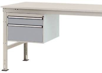 Komplett UNIVERSAL háztartás a munkaeszközök intelligens és tiszta szervezéséhez és tárolásához közvetlenül a munkahelyen, 500 mm szélességgel, 580 mm mélységgel és 360 mm magassággal. A ház szilárdan megerősített acéllemezből készül, kiváló minőségű, porcelánval bevont alumínium ezüstben, hasonlóan a RAL 9006-hoz. A ház minden UNIVERSAL munkaasztalhoz berakható 200 kg-ig (Ergo = 100 kg). A ház hengerzárral és 2 kulcskal, valamint központi zárral van felszerelve. A ház rögzített UNIVERSAL munkaasztalokon használható, 1200 mm asztalmélységgel. A ház használható magassága 300 mm, és 2 fiókból áll, 1 x 100 és 1 x 200 mm magassággal. A fiókok 80% -ig kihúzhatók és 35 kg-ig is elférnek. A fiókok nagy fogantyúval és kiegészítő fiókkal vannak ellátva a fiókok címkézéséhez. A ház egyetlen kihúzható zárral van felszerelve. Ez megakadályozza több fiók akaratlan és egyidejű kinyílását, és így csökkenti az összetörés és a sérülés kockázatát. UNIVERSAL Ergo munkaasztalok csak 1500 mm szélességű asztaloktól használhatók.