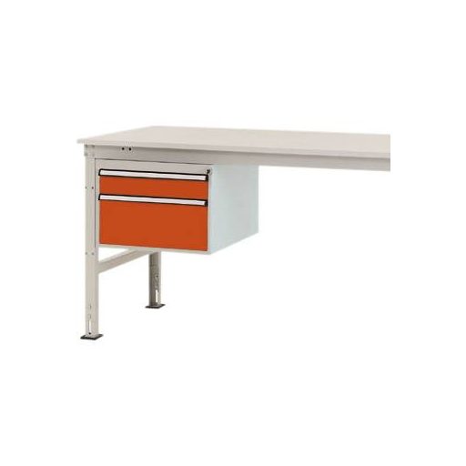 Komplett UNIVERSAL háztartás a munkaeszközök intelligens és tiszta szervezéséhez és tárolásához közvetlenül a munkahelyen, 500 mm szélességgel, 580 mm mélységgel és 360 mm magassággal. A ház szilárdan megerősített acéllemezből készül, kiváló minőségű, porcelán bevonatú, rotoros narancssárga színű RAL 2001. A ház minden UNIVERSAL munkaasztalhoz berakható 200 kg-ig (Ergo = 100 kg). A ház hengerzárral és 2 kulcskal, valamint központi zárral van felszerelve. A ház 800 mm-es asztalmélységű mobil UNIVERSAL munkaasztalokon használható. A ház használható magassága 300 mm, és 2 fiókból áll, 1 x 100 és 1 x 200 mm magassággal. A ház fiókos zárral rendelkezik, amely megakadályozza, hogy a fiók vezetés közben véletlenül kifogyjon. A fiókok 80% -ig kihúzhatók és 35 kg-ig is elférnek. A fiókok nagy fogantyúval és kiegészítő fiókkal vannak ellátva a fiókok címkézéséhez. A ház egyetlen kihúzható zárral van felszerelve. Ez megakadályozza több fiók akaratlan és egyidejű kinyílását, és így csökkenti az összetörés és a sérülés kockázatát. UNIVERSAL Ergo munkaasztalok csak 1500 mm szélességű asztaloktól használhatók.