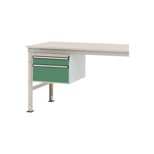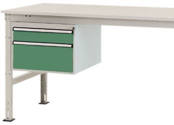 Komplett UNIVERSAL háztartás a munkaeszközök intelligens és tiszta szervezéséhez és tárolásához közvetlenül a munkahelyen, 500 mm szélességgel, 580 mm mélységgel és 360 mm magassággal. A ház szilárdan megerősített acéllemezből készül, kiváló minőségű, porréteggel bevont, zöld színű RAL 6011 anyaggal. A ház minden UNIVERSAL munkaasztalhoz berakható 200 kg-ig (Ergo = 100 kg). A ház hengerzárral és 2 kulcskal, valamint központi zárral van felszerelve. A ház 1200 mm-es asztalmélységű mobil UNIVERSAL munkaasztalokon használható. A ház használható magassága 300 mm, és 2 fiókból áll, 1 x 100 és 1 x 200 mm magassággal. A ház fiókos zárral rendelkezik, amely megakadályozza, hogy a fiók vezetés közben véletlenül kifogyjon. A fiókok 80% -ig kihúzhatók és 35 kg-ig is elférnek. A fiókok nagy fogantyúval és kiegészítő fiókkal vannak ellátva a fiókok címkézéséhez. A ház egyetlen kihúzható zárral van felszerelve. Ez megakadályozza több fiók akaratlan és egyidejű kinyílását, és így csökkenti az összetörés és a sérülés kockázatát. UNIVERSAL Ergo munkaasztalok csak 1500 mm szélességű asztaloktól használhatók.