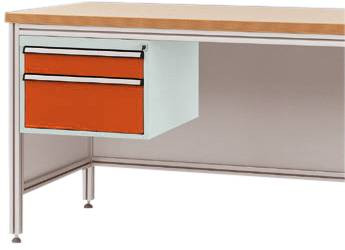 Háztartó ALU munkaasztalokhoz, használható magasság 300 mm, 2 fiókkal, az asztalmélységhez 600 mm